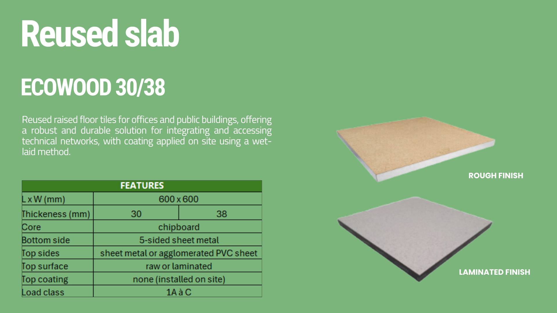 - Reconditioning services for raised access floors to make them more durable and eco-responsible.